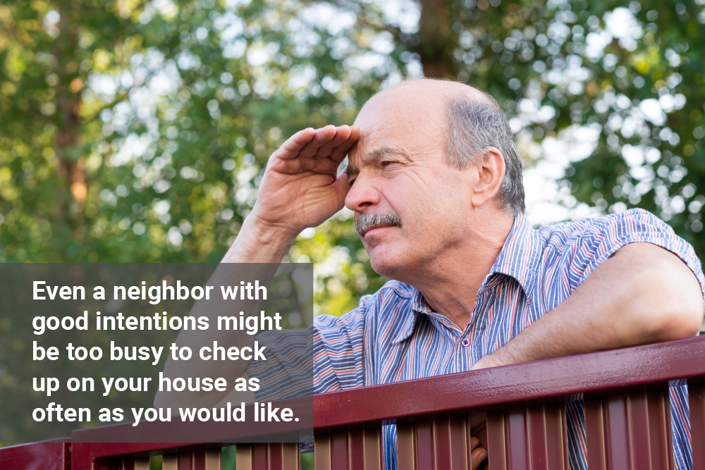 While you might be tempted to ask your neighbors to keep an eye on your home while you are away, doing so is not the most reliable method of keeping your home safe. Even a neighbor with good intentions might be too busy to check up on your house as often as you would like. Additionally, a neighbor won’t have the same expertise as a professional who knows how to check on a home’s interior for signs of damage and other problems that a neighbor may not detect.