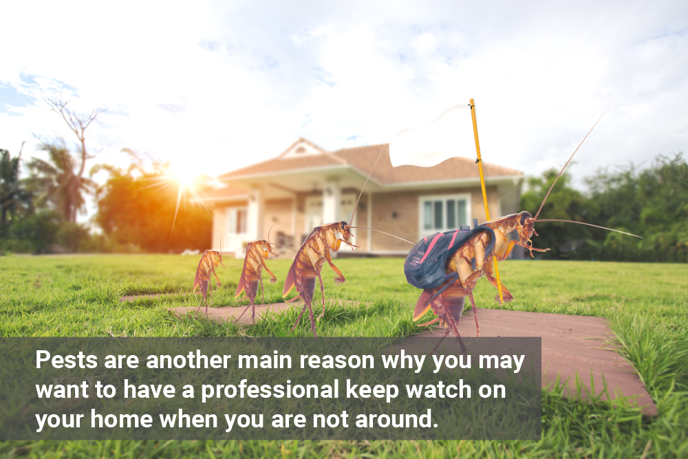 Pests are another main reason why you may want to have a professional keep watch on your home when you are not around. A home watch property management company will be able to detect pest problems and get rid of them before they cause damage to the home’s interior. Ants, mice, bees, termites, and other pests can quickly cause problems in your home once they discover that it has an environment that they like. A trained professional can remove pests when they find their way into a home or garage and look for subtle warning signs that pests are present in the first place.